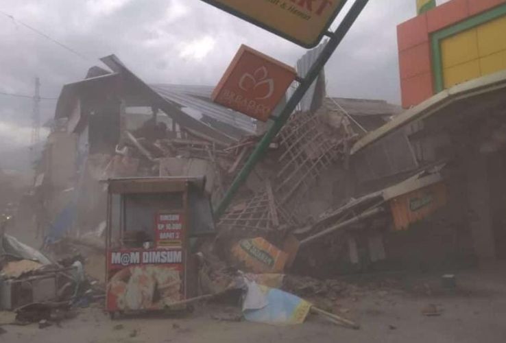 ▲ 印尼地震造成建築倒塌。(圖/翻攝自推特)