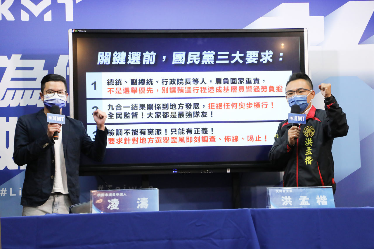 洪孟楷並代表國民黨在關鍵選前提出三大要求,首先,總統、副總統、行政院長等人,肩負國家重責,不是選舉優先,別讓輔選行程造成基層員警過勞負擔;第二,九合一結果關係到地方發展,拒絕任何奧步橫行!全民監督!大家都是最強隊友;第三,檢調不能有黨派!只能有正義!要求針對地方選舉歪風即刻調查、佈線、嚇阻。
