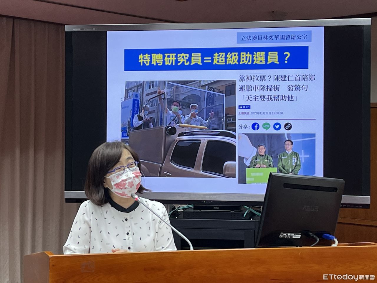 ▲立委林奕華批評陳建仁坐領中研院高薪,卻違反行政中立。(圖/記者許敏溶攝)