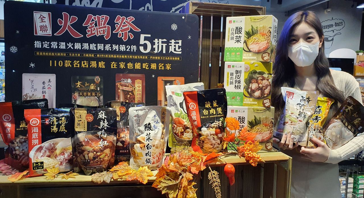 全聯火鍋湯底包括常溫湯底、冷凍湯底2大類,其中常溫湯底近5年的品項數從50餘款增加到超過100款,積極經營加上名店、獨家商品盡出,銷售占比達近7成,銷售業績年年雙位數成長。業者表示,第四季是常溫火鍋湯底銷售旺季,業績占比超過5成,而去年將湯底轉為常銷品販售後,也帶動春夏季吃鍋的商機,顯示台灣人對於湯底的需求相當高。