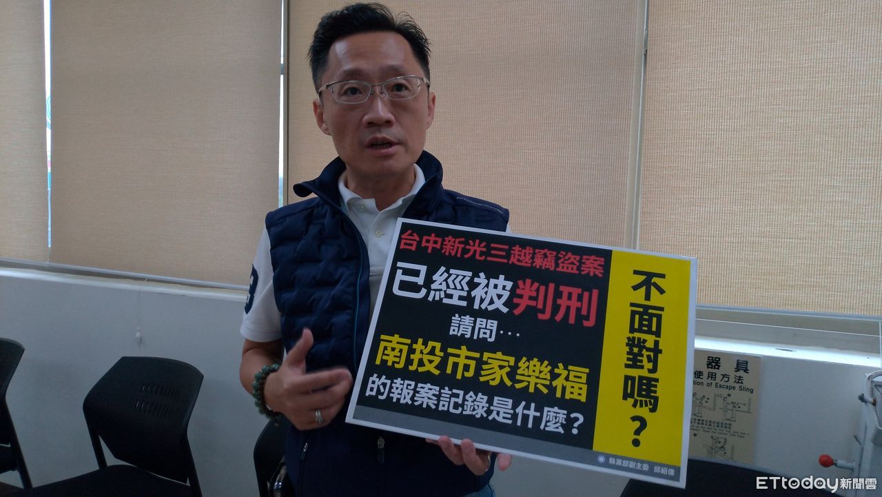 ▲國民黨南投縣黨部副主委邱紹偉指控民進黨南投市長候選人賴燕雪涉犯2起竊案。(圖/記者高堂堯攝)