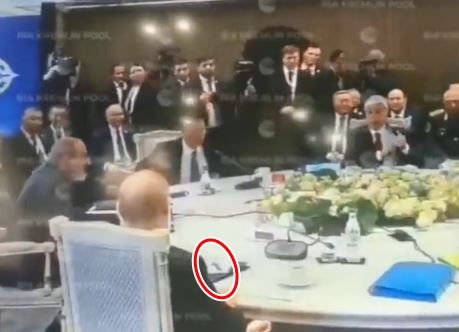▲普丁在集體安全條約組織峰會上爆氣摔筆。(圖/翻攝自推特@Gerashchenko_en)