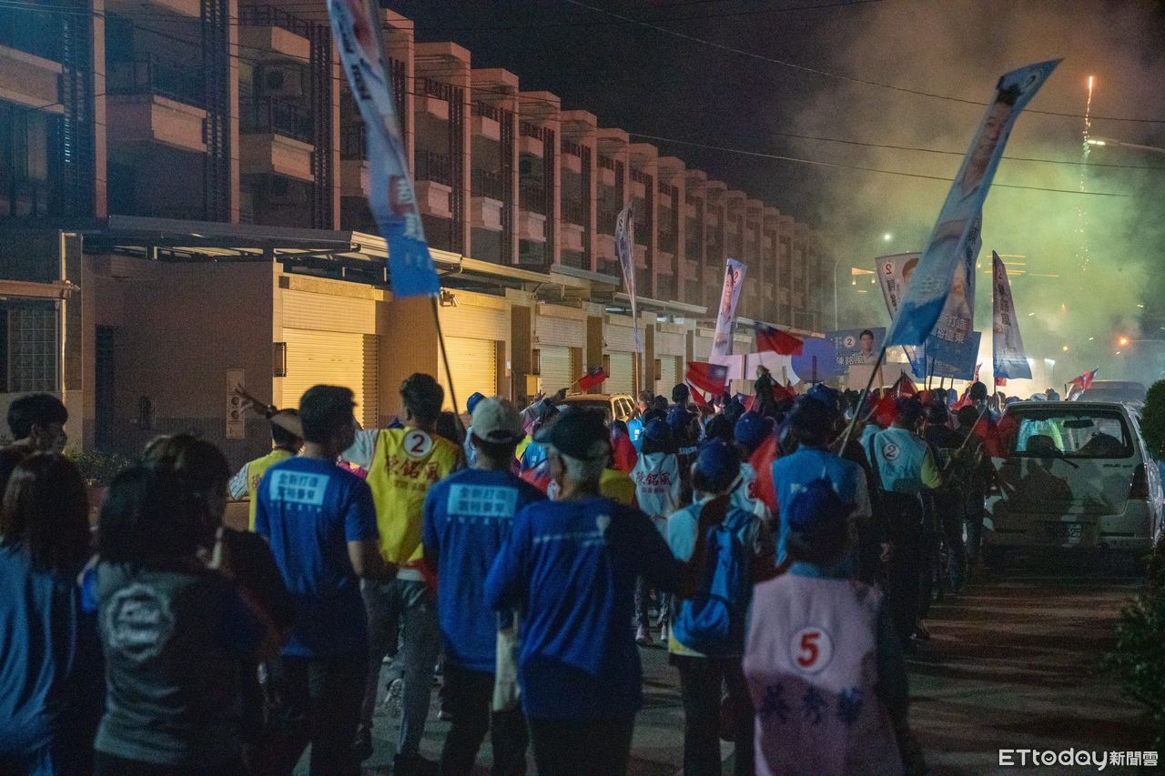 台東縣縣長候選人饒慶鈴與市長候選人陳銘風24日傍晚,從東海運動公園出發,徒步向大豐地區的店家鄉親拜票,將近有200多位的鄉親齊聚陪同。