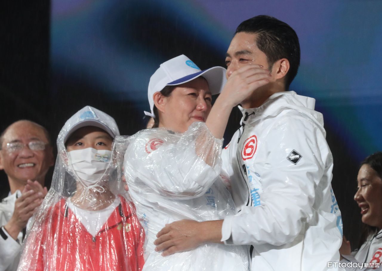 國民黨台北市長候選人蔣萬安今(25)晚間舉辦「奮戰勝選之夜」造勢晚會,儘管台北下著綿密大雨,但未澆熄支持者的熱情,蔣萬安上台時現場更破五萬人。蔣萬安妻子石舫亘上台講話時語帶哽咽,謝謝台下所有選民給蔣萬安的照顧,希望陽光的力量能夠一直陪伴蔣萬安,她並在台上向大家深深一鞠躬,大兒子蔣得立也與爸爸擁抱,一家人溫馨互動溫暖支持者的心。