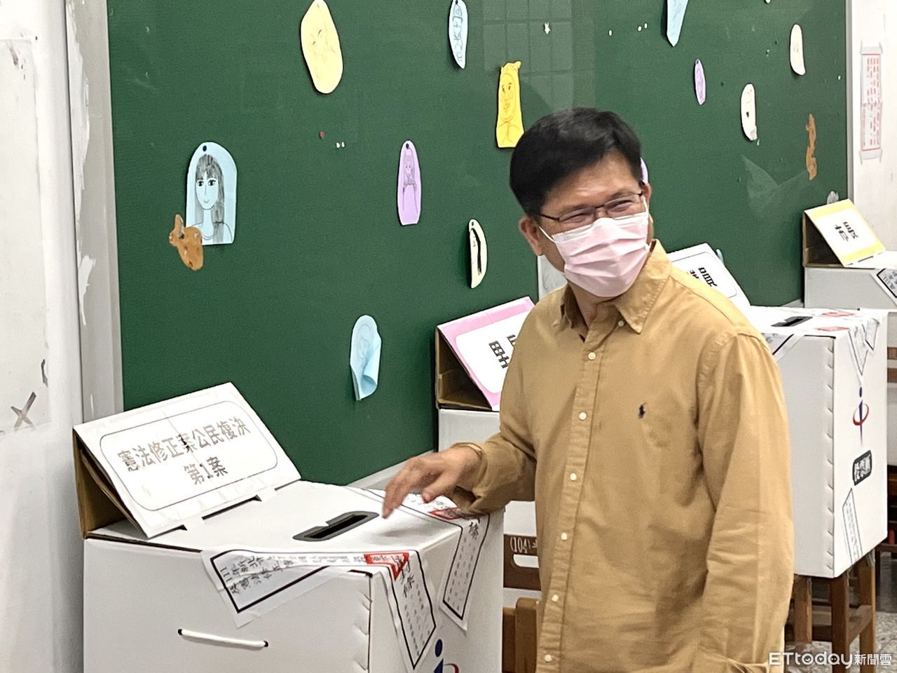 ▲林佳龍今天上午8點前往投票。(圖/記者許靖騏攝,下圖同)