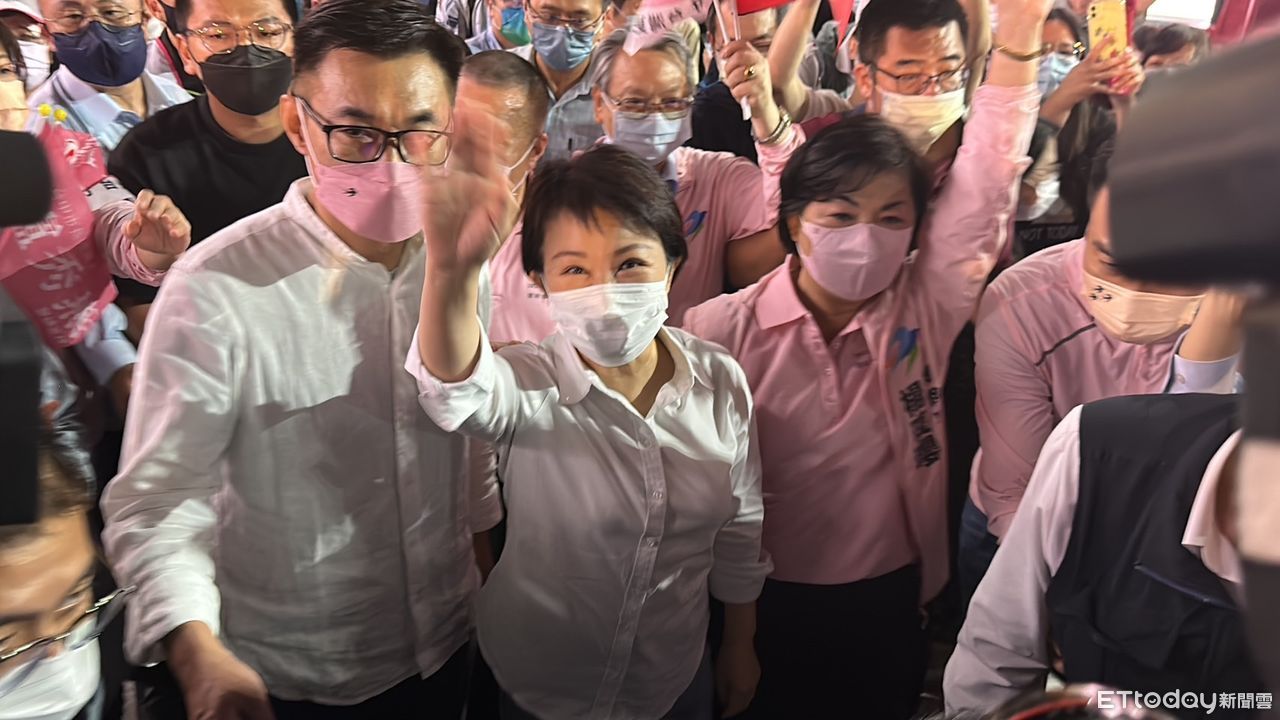 ▲盧秀燕抵達總部。(圖/記者許權毅攝)