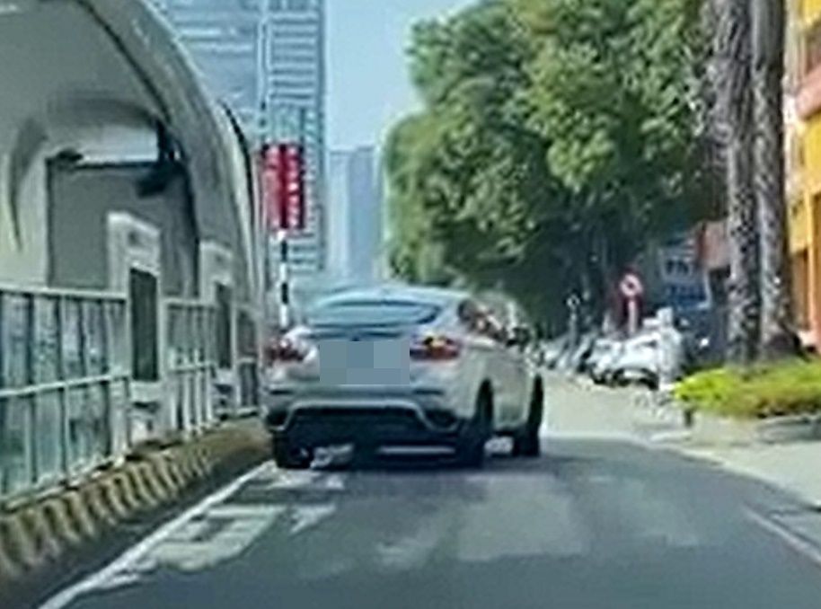 臉書社團《爆廢公社公開版》昨出現該段影片,內容顯示,白色BMW後方閃著警示燈,沿著台灣大道慢車道往大肚山方向行駛,車體不明原因偏移卻仍繼續直行,並且發出詭異怪聲。