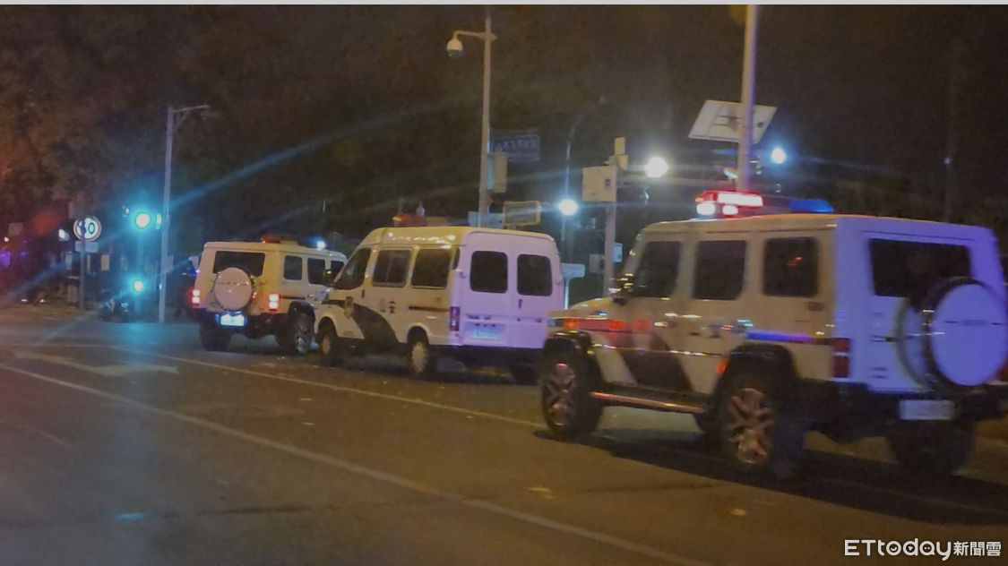 入夜後警力維安更加緊張,順著亮馬橋一帶街道行走,幾乎是三步一崗、五步一哨,不只警車停靠路邊,還有警察站在路口、十字路轉角等地方,氣氛非常嚴肅緊張。