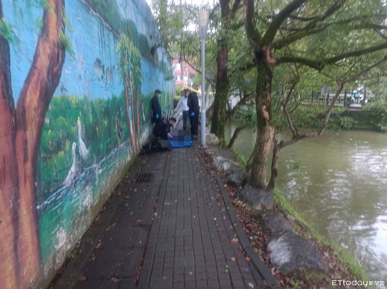 ▲新北汐止金龍湖旁發現男性浮屍,警追查身分通知家屬指認。(圖說下同/記者張君豪翻攝)