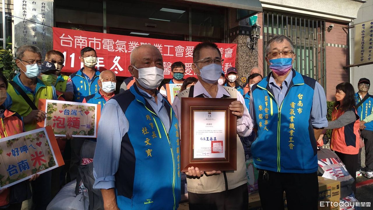 ▲台南市勞工局與電氣工會合力送暖,兵分三路將紅包、白米、泡麵及暖暖被等愛心物資發送給20戶職災、弱勢家庭。(圖/記者林悅攝)