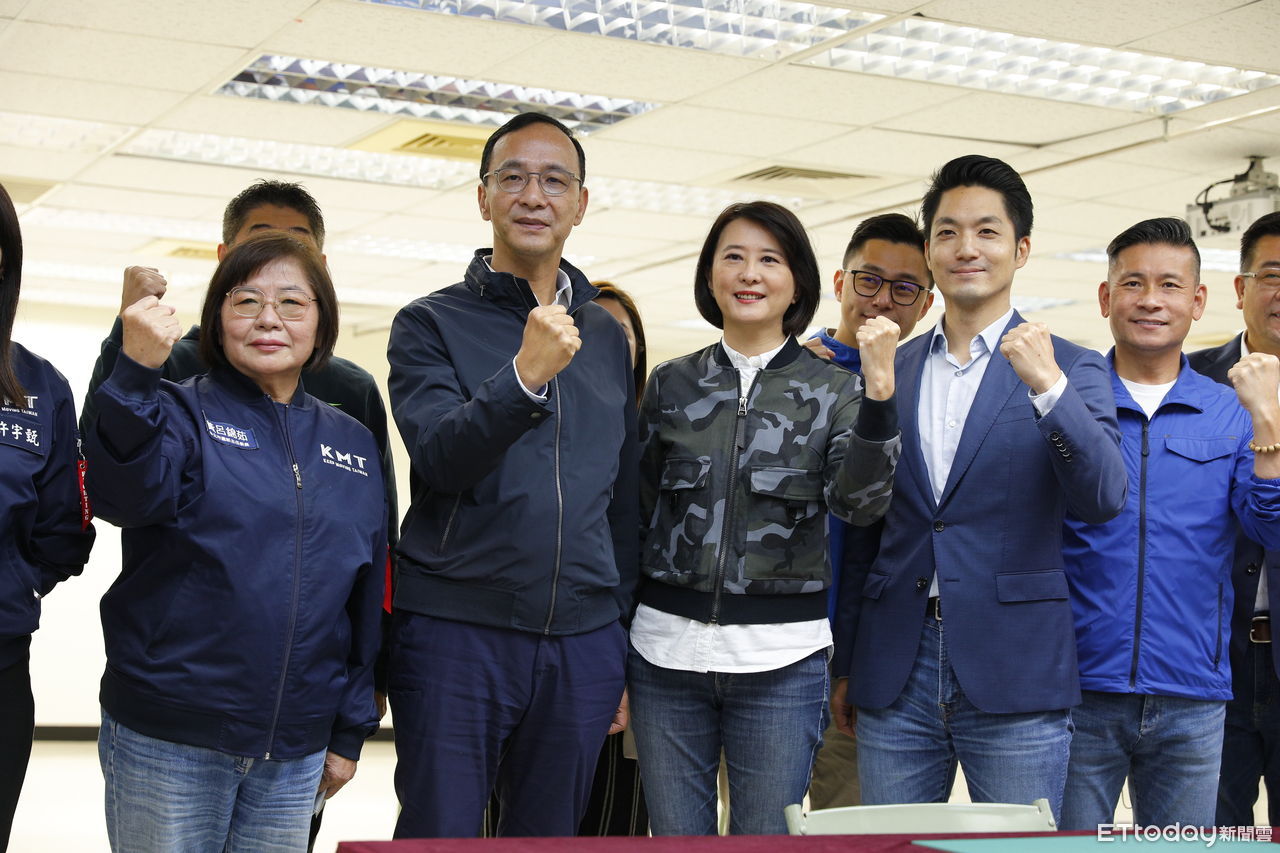 ▲王鴻薇由黨主席朱立倫及新科台北市長蔣萬安陪同到選委會登記參選。(圖/記者湯興漢攝)