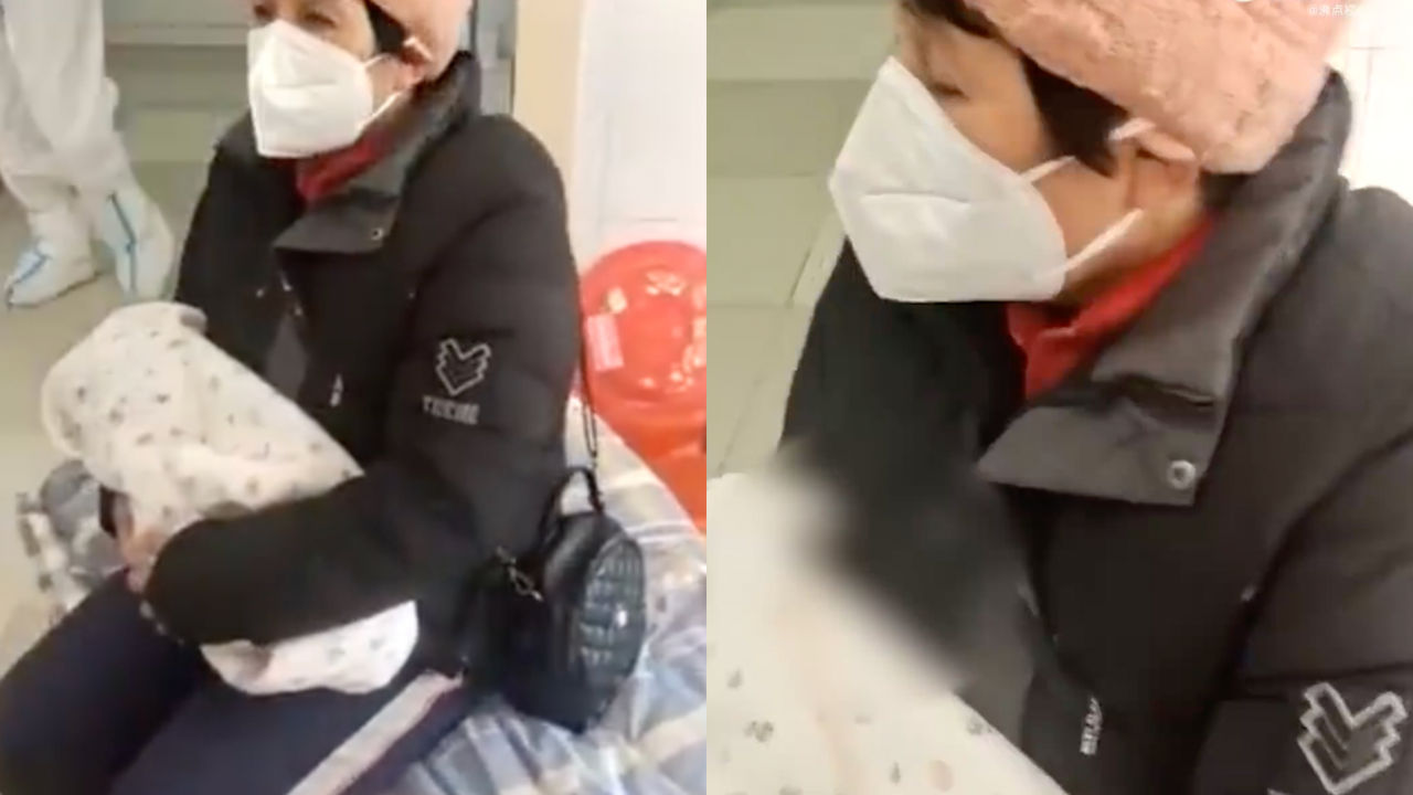▼ 網傳影片片段,婦人抱著嬰屍向醫院討說法。(圖/翻攝自秒拍)