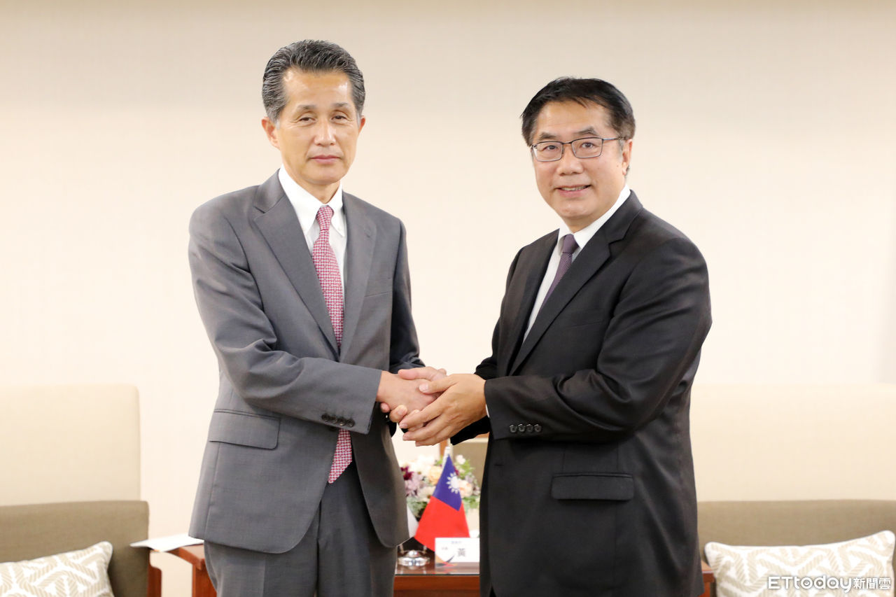 ▲日本笠間市山口伸樹市長,首次拜會市長黃偉哲,農委會農糧署胡忠一署長、日本笠間台灣辦事處木下知香處長、新聞暨國際關係處長蘇恩恩、農業局長李建裕、觀光旅遊局長郭貞慧陪同與會。(圖/記者林悅翻攝,下同)