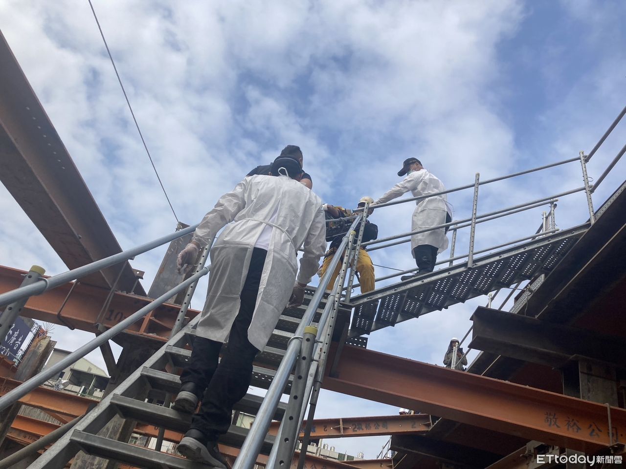 ▲高雄一名女工在工地墜樓,被消防員救起 。(圖/記者吳奕靖翻攝)