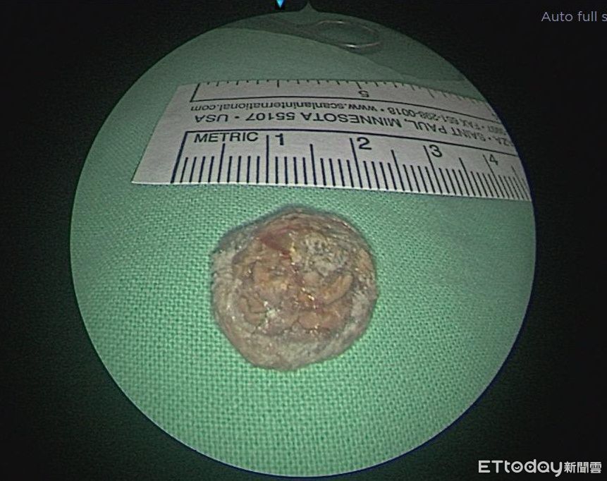 田輝勣表示,這顆鼻竇異生齒的位置十分特別,若採取傳統手術方式,需先翻開上嘴唇內側牙齦部位,之後打洞鑽入鼻腔前壁取出,不僅傷口大,且術後癒合時間長,經溝通後,患者同意採用「自然孔」(鼻腔)執行手術,過程中透過磁導航3D立體定位系統,很快就找到異生齒位置,前後僅30分鐘即取出約2公分大的異生齒。