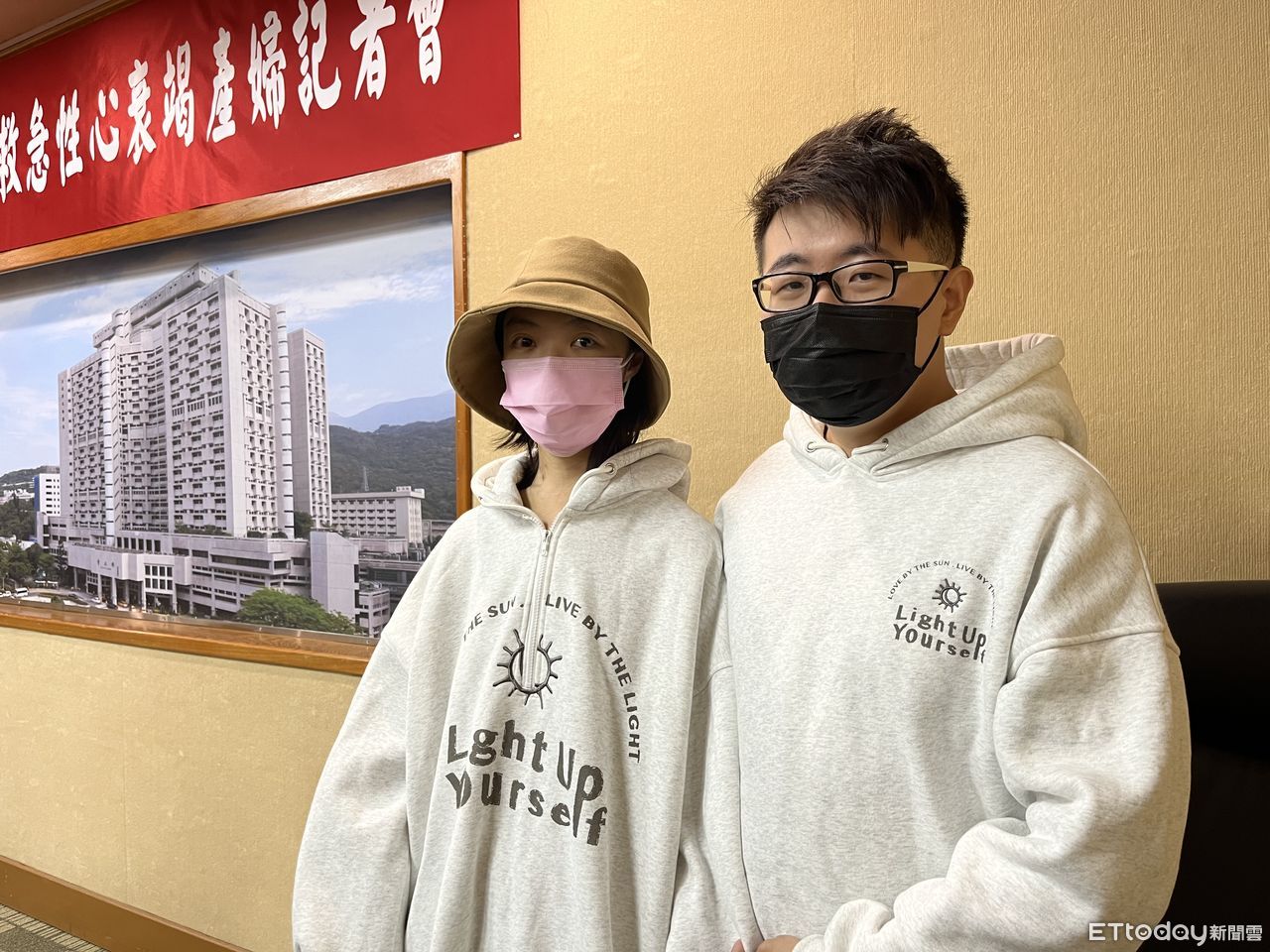 ▼台北榮總醫療團隊與陳小姐、王先生合影。(圖/記者嚴云岑攝)