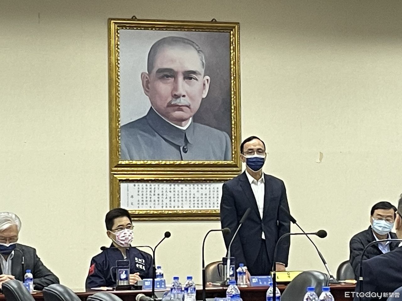 ▲朱立倫今下午出席國民黨中常會。(圖/記者鄭佩玟攝)