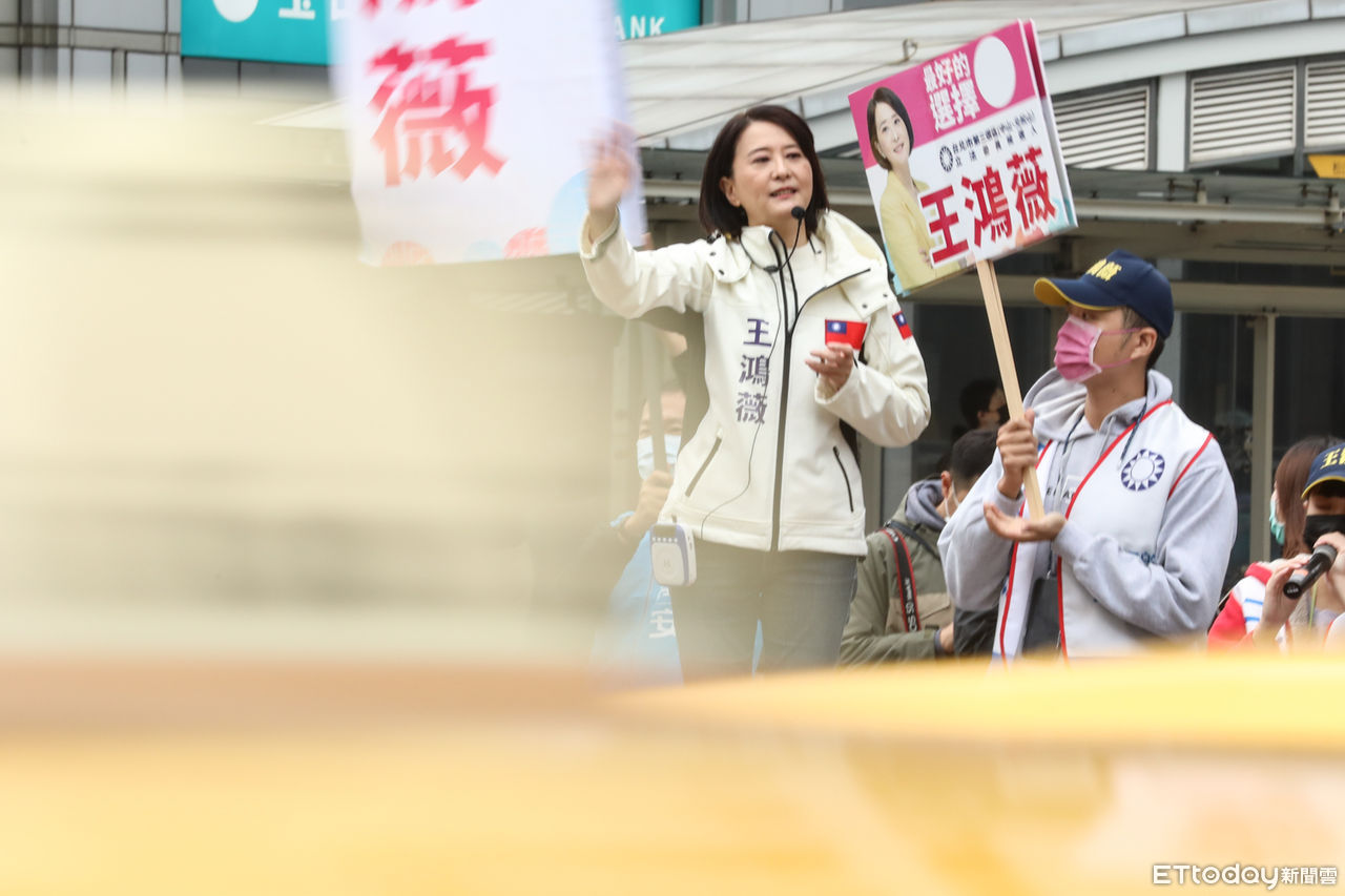 ▲國民黨立委候選人王鴻薇松江南京路口拜票。(圖/記者林敬旻攝)