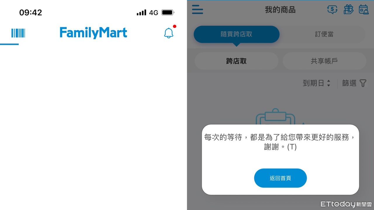 《ETtoday新聞雲》實際打開APP畫面,截至目前為止仍未修復,店員也指出因許多民眾沒帶現金只能用線上支付,再加上連咖啡都無法兌換,十分崩潰。