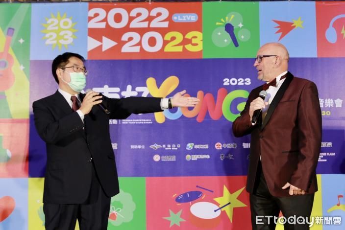 ▲荷蘭好聲音冠軍馬丁賀肯斯(Martin Hurkens)在台南的首場音樂會,在南紡廣場登場,市長黃偉哲致詞歡迎馬丁來到台南。(圖/記者林悅翻攝,下同)