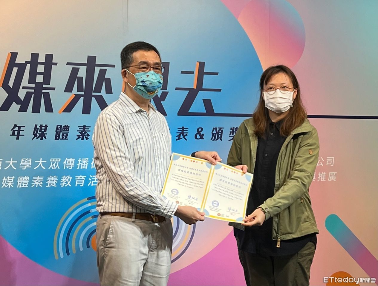 ▲台師大大傳所教授陳炳宏頒發媒體素養參與證明給學員。(圖/記者楊惠琪攝)