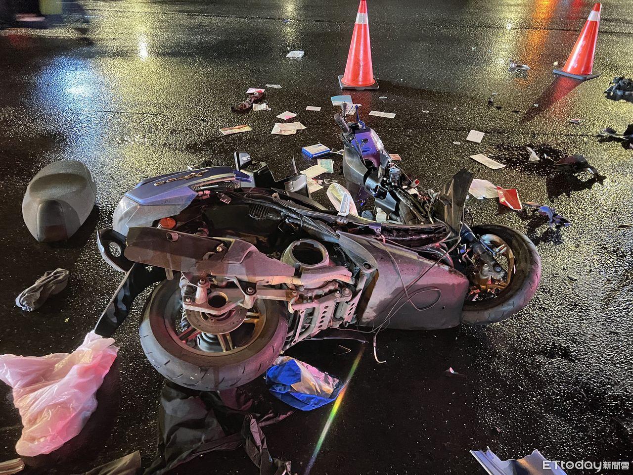 11日晚間10時許,34歲姚姓男子駕駛特斯拉電動車,沿安康路一段往碧潭方向,行駛在內側車道左轉安一路往國道3號安坑交流道時,與對向直行的45歲余姓男子騎乘的機車發生碰撞,余男當場被撞飛,全身多處骨折倒地不起,現場機車零件散落一地。