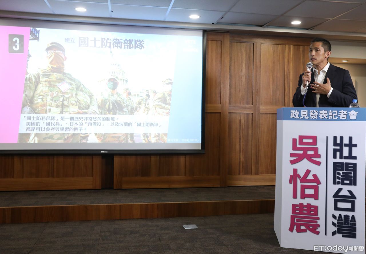 吳怡農今天上午在位於中山區的達文西會議空間舉行第二場政策發表記者會,以「和平是我們的使命,強化國家安全」為題拋出4項主張,包括:義務役的訓練內容與役期應該進行檢討,建立國家安全政策指導文件體系,建立「國土防衛部隊」,全面推廣「災害應變」訓練。