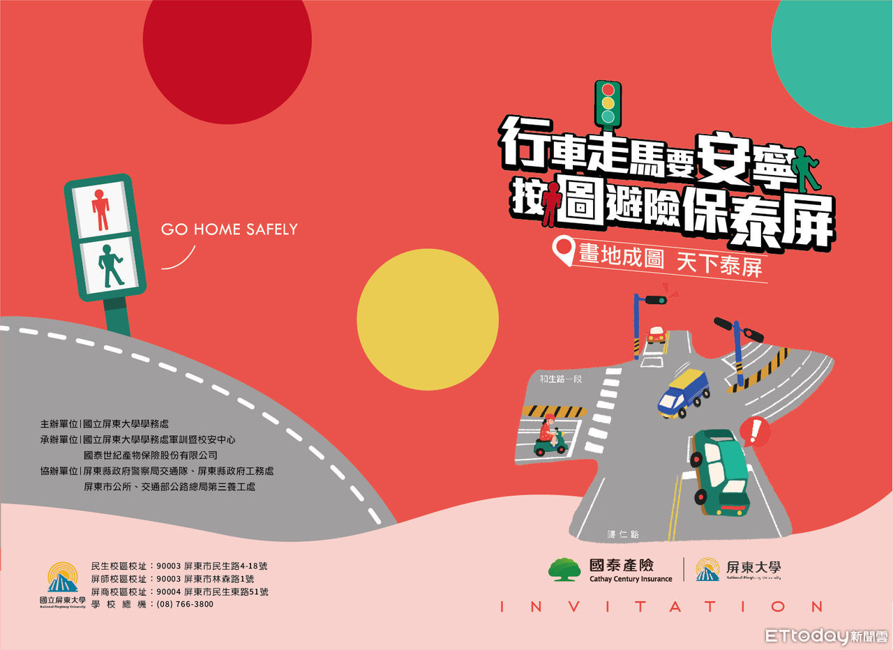 這次與國泰產險合作提供易肇事路口供相關公部門改善建議、申請教育部與內政部校園周邊暨行車安全道路改善計畫、爭取林森路1巷封路開通,善盡大學社會責任,屏大積極發揮在地大學影響力,整合公私部門資源,使學生安心、家長放心,更期盼與屏東共好共榮。