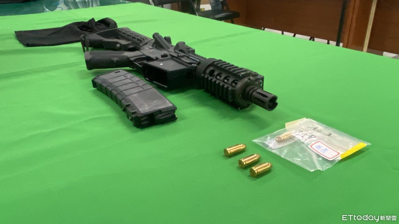 ▲警方起出涉案的M4-A1衝鋒槍和子彈。(圖/記者陳宏瑞攝)