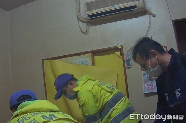 員警立即請盧先生帶路前往察看,敲門時屋內均無回應,套房的窗戶被紙糊住,員警便揭起一角準備查看,卻聽到微弱的呼救聲,員警立即將紙張揭開查看,發現王女躺在屋內床上無法動彈,吳員立即通報消防人員前來協助救護,黃員則推開窗戶探手進去把門打開。