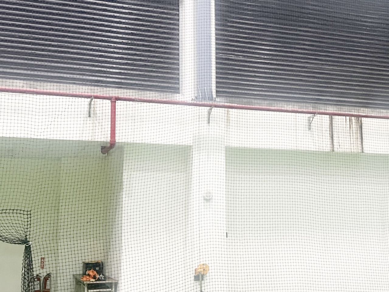 ▲桃園市立平鎮棒球場室內練習場,啟用未滿3年卻出現「戶外下大雨、室內下小雨」等漏水問題。(圖/熱心民眾提供)