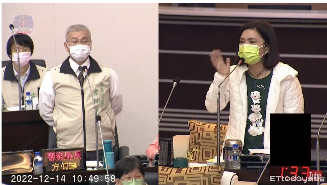 ▲國民黨台南市議員蔡淑惠質詢指出,有議長參選人12月7日晚間在中正所咆哮、辱罵員警,要求市警局長方仰寧下令保存當天監視畫面,並依妨害公務偵辦,方卻實問虛答而引發眾怒。(圖/記者林悅翻攝)