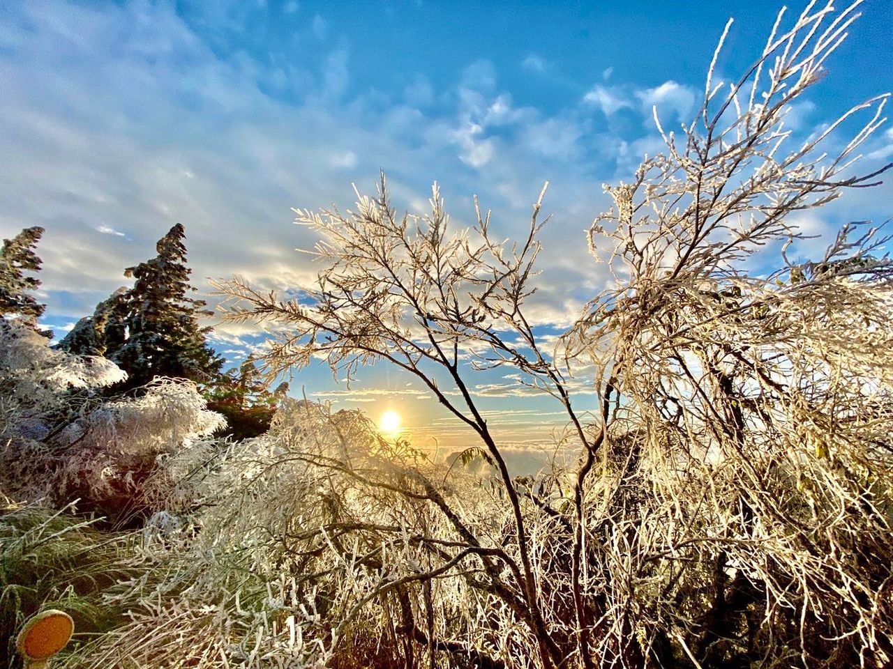 寒流發威!不僅合歡山下雪,太平山也出現0℃低溫,太平山遊樂區今(18日)晨更達到-5℃,出現霧淞現象,清晨日出照耀出一片美景。
