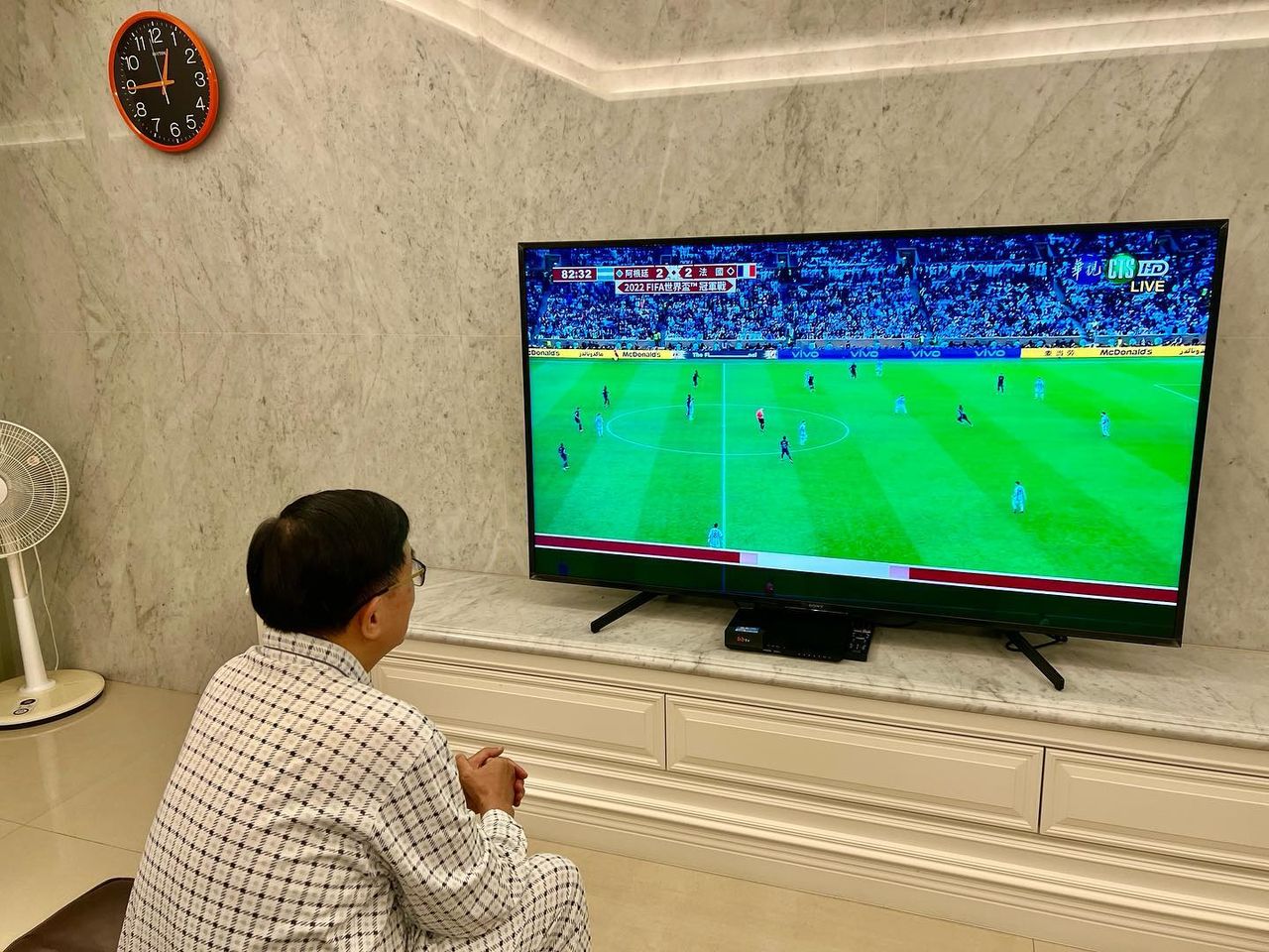 ▲前總統陳水扁看世足。(圖/翻攝陳水扁臉書)
