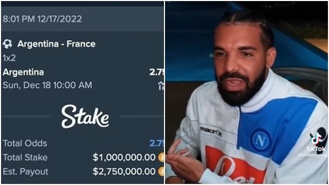 ▲德瑞克(Drake)豪擲100萬美元,力挺阿根廷「在正規賽時間內」擊敗法國。(圖/翻攝instagram@champagnepapi)