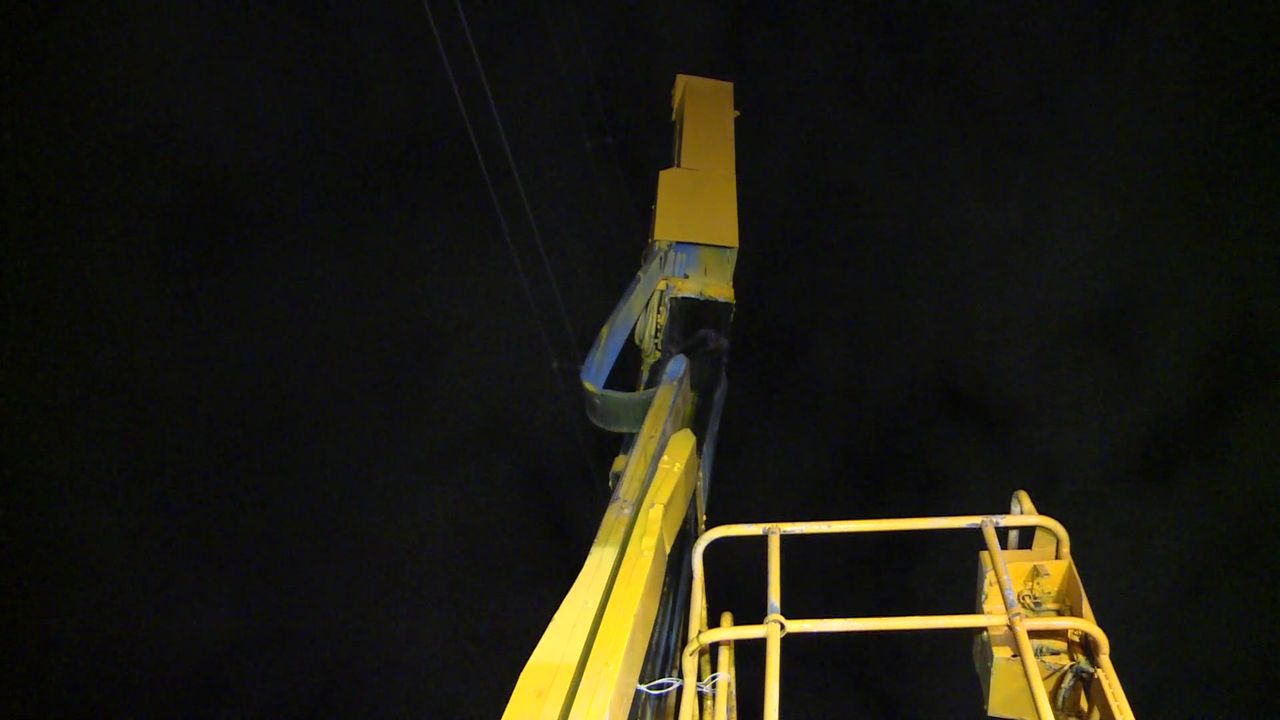 ▲工程車吊籃、吊臂受損。(圖/記者游宗樺翻攝)