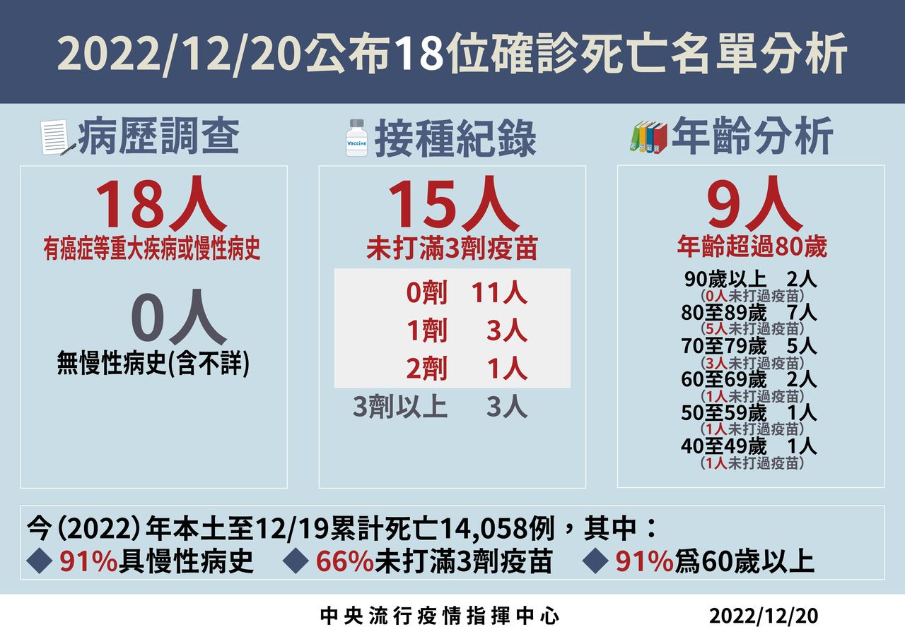 ▲12/20本土確診死亡病例分析。(圖/指揮中心提供)
