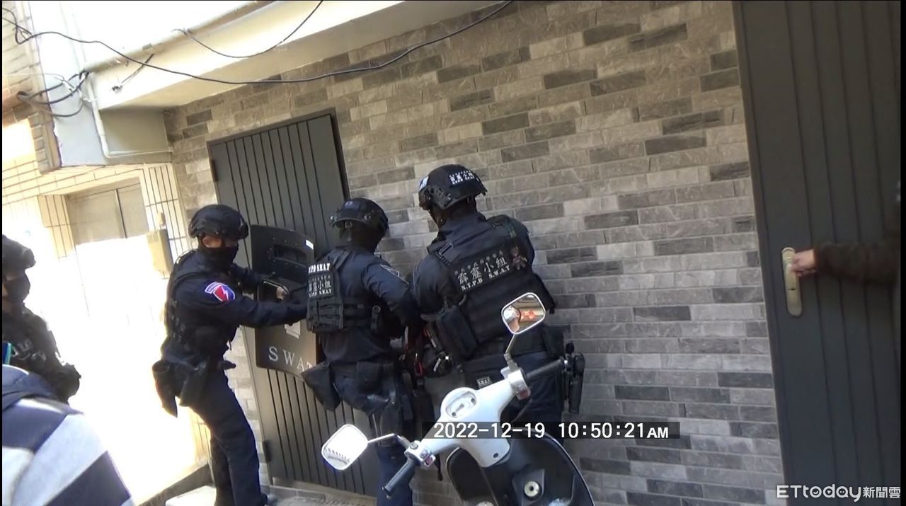 ▲大批警力破門查緝詐團機房。(圖/記者陳以昇翻攝)