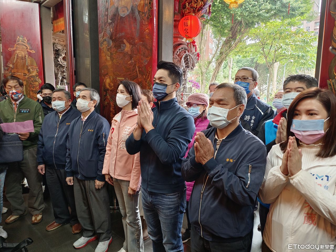 ▲蔣萬安陪同王鴻薇參拜植福宮。(圖/記者宋良義攝影)