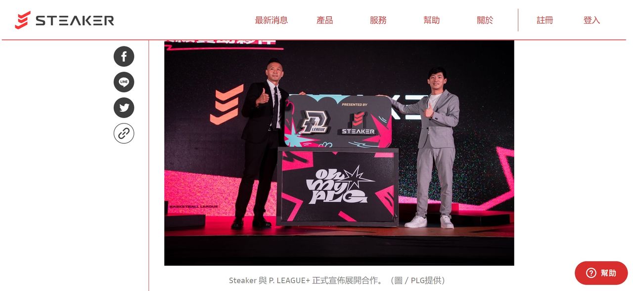▲Steaker網站10月公開創辦人黃偉軒與PLG執行長陳建州的合作照片。(圖/翻攝Steaker官網)