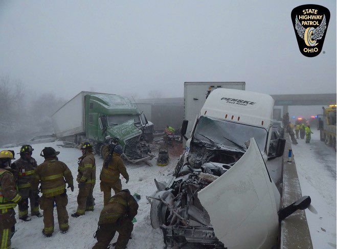 ▲俄亥俄州高速公路23日發生46輛車相撞意外,巡警證實已有4人死亡。(圖/翻攝自俄亥俄州高速公路巡警隊推特)