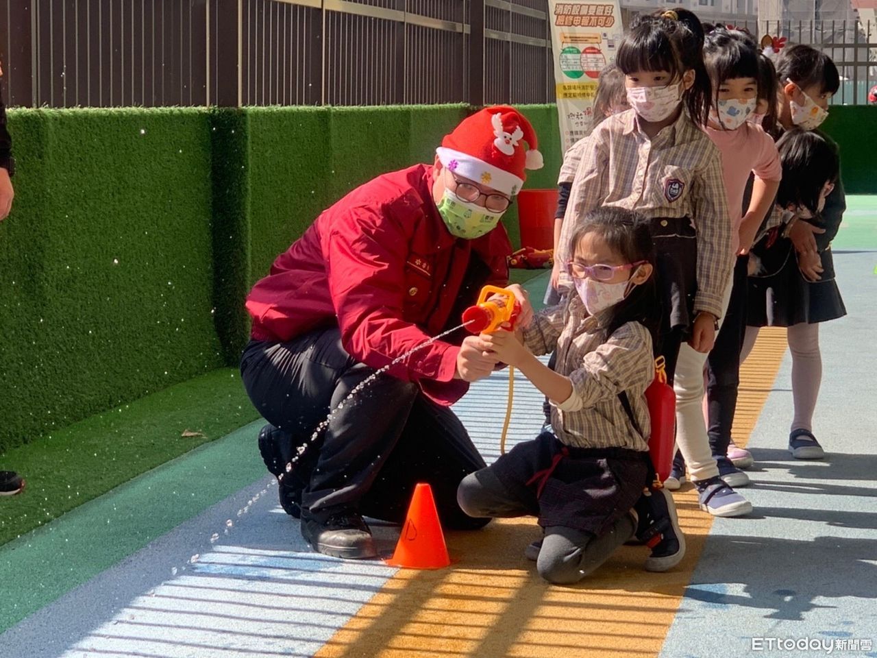 本次宣導深入幼兒園內容包羅萬象,除防火、防災、防震與防溺知識以外,更結合防疫勤洗手、節水節電、CPR與禮讓救護車等項目,讓小朋友與現場防救災人員透過遊戲的方式互動,擺脫以往死板的海報口頭宣導,讓原本教條式的講解,變得生動活潑,而消防聖誕老公公的造型也成功抓住小朋友目光,各個目不轉睛地聆聽。