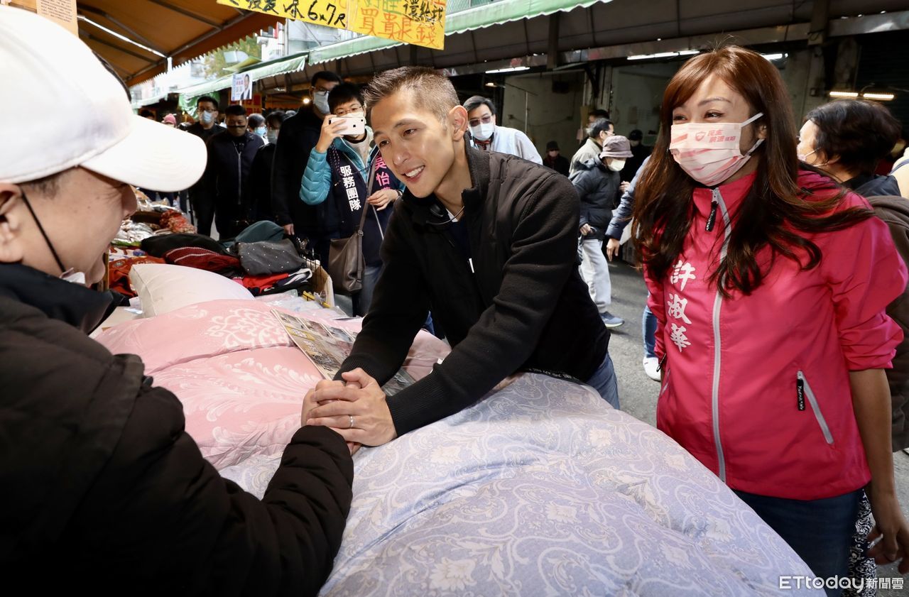 ▲吳怡農在議員許淑華陪同下,到草埔市場掃街 。(圖/記者李毓康攝)