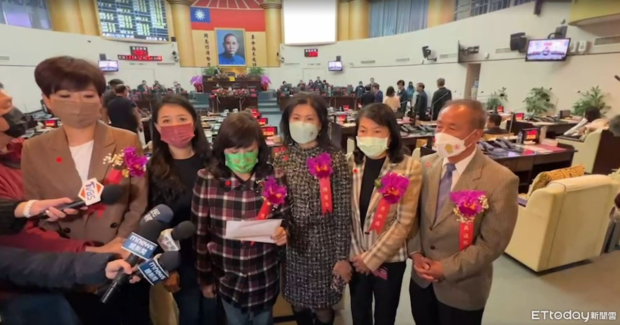 ▲台南市第四屆議會開議,陳秋萍等6名民進黨正國會議員共同發表聲明。(圖/記者林悅攝)