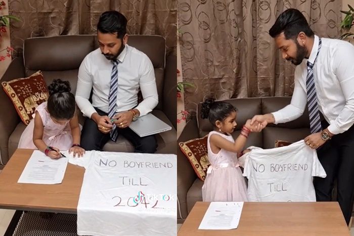 大家都說女兒是爸爸的前世情人,從出生那一刻起就被捧在手心上,而馬來西亞一名父親更是怕自己女兒「太早變心」,所以就安排了一場簽約儀式,讓女兒在2042年前都不交男朋友,疑似不知情的4歲女兒就這樣開心地簽了名,爸爸則露出滿意的微笑。