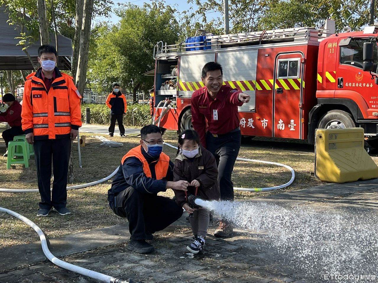 ▲慈濟台南善化聯絡處舉辦歲末祝福感恩會,台南市消防局第四大隊動員所屬分隊,舉辦「防火防災人人有責」宣導活動,讓小大朋友體驗防災重要性。(圖/記者林悅翻攝,下同)
