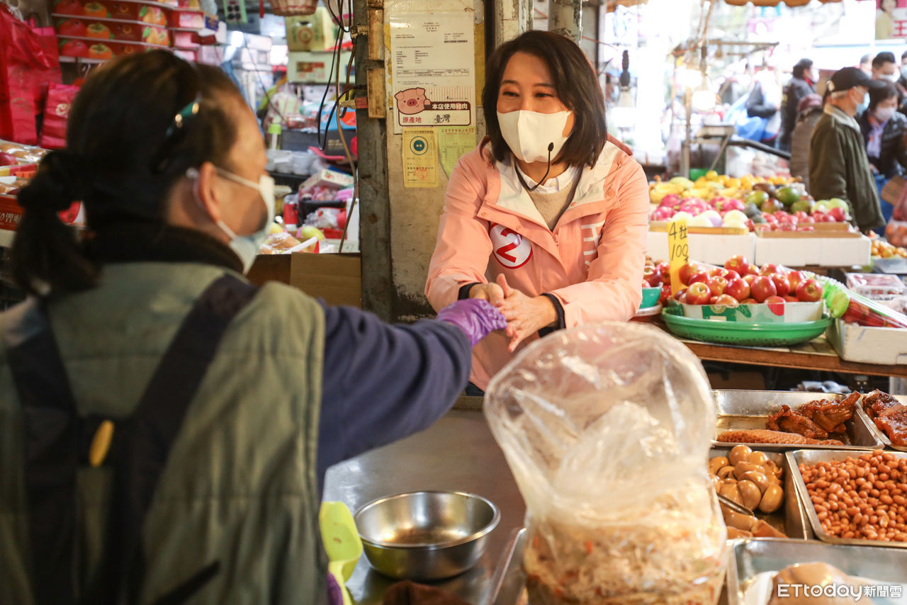 ▲國民黨立委候選人王鴻薇於長春市場掃街。(圖/記者林敬旻攝)