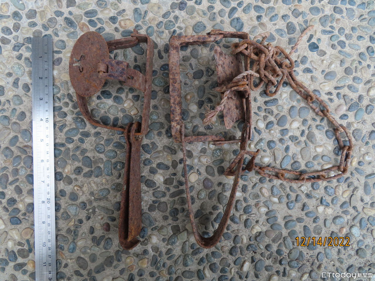 ▲南投縣農業處及家畜疾病防治所人員前往國姓鄉山林稽查,帶回2捕獸鋏銷毀。(圖/南投縣家畜疾病防治所提供,下同)