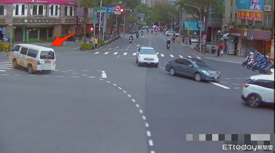 ▲新北市一部長照專車開上行人庇護島 。(圖/記者陳以昇翻攝)