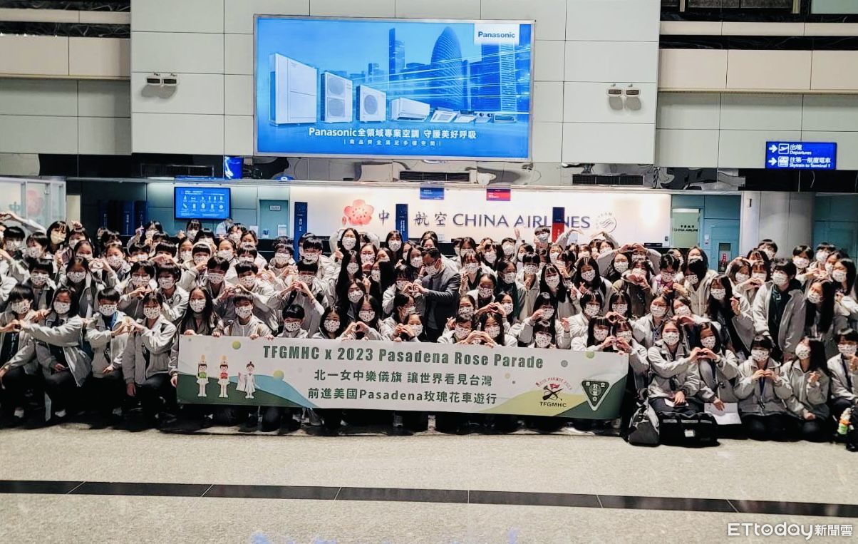 暌違18年,北一女中樂儀旗隊再度獲邀參加美國加州玫瑰花車元旦大遊行,今晚(27日)啟程赴美,因返台隔周就要段考,為了不影響課業,學校特別安排「晚去早回」的「紅眼班機」,今天放學直奔機場,1月6日清晨返國,也是背著書包直接上學去。